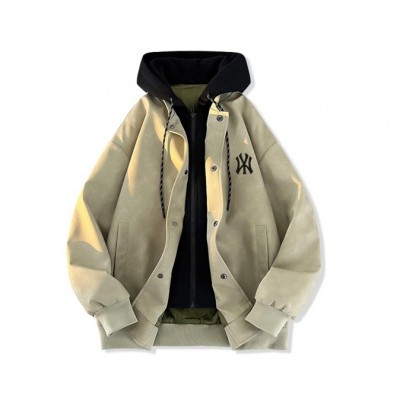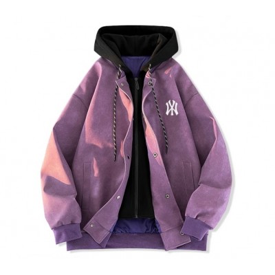 WYBT秋冬季连帽皮夹克男士加绒加厚美式复古假两件加棉外套上衣情侣款