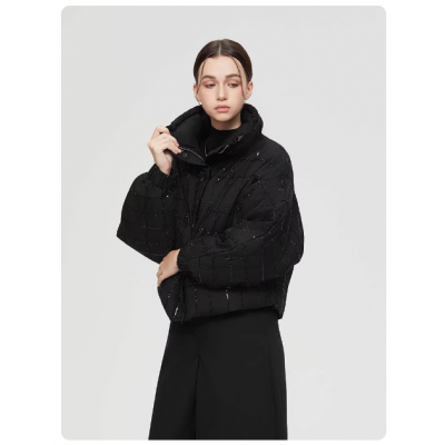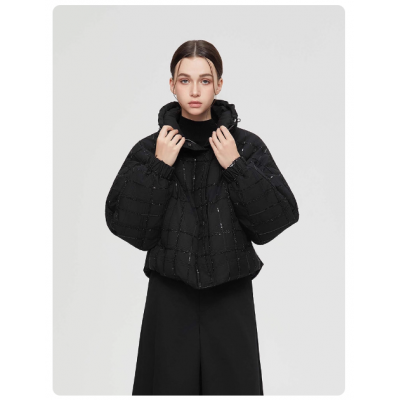 sdeer圣迪奥女装25年新品时尚立领格纹宽松羽绒服S25463108