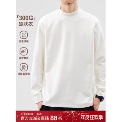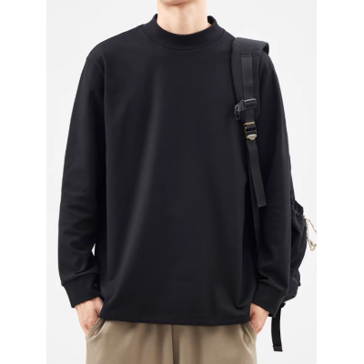 双面磨毛半高领长袖T恤男秋冬季高级感保暖内搭打底衫