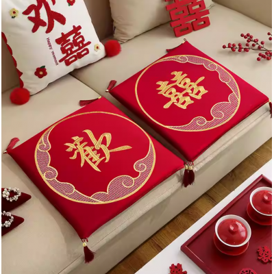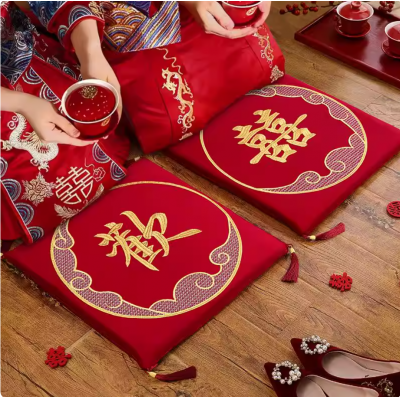 新郎新娘结婚跪垫一对敬茶改口加厚喜垫子婚礼拜堂红色喜字坐福垫
