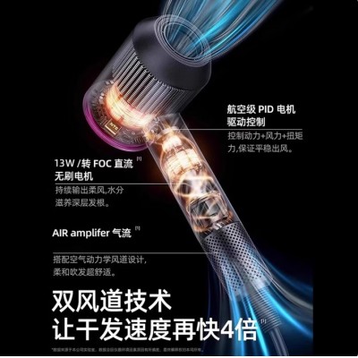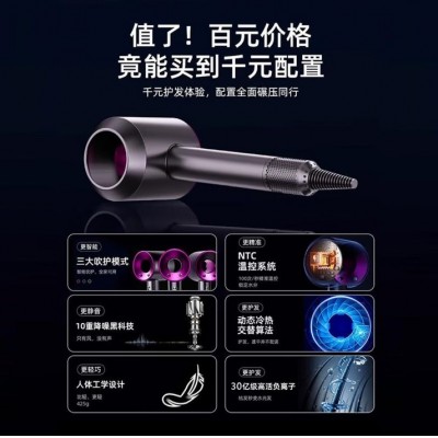 戴森德乐【华强北顶配原版1:1】高速无叶吹风机家用静音负离子大功率不伤发大风力理发店发廊电吹风筒礼物 玫红色【50亿水润负离子】丨恒温速干护发礼盒装