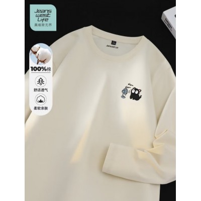 JEANSWEST LIFE真维斯纯棉长袖t恤男内搭青少年重磅休闲风打底衫外穿体恤卫衣男