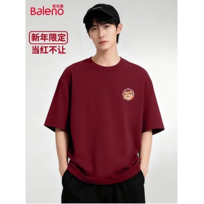 班尼路(Baleno)t恤男2026春夏新款本命年男士短袖新年衣服重磅纯棉宽松情侣体恤