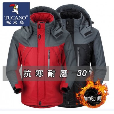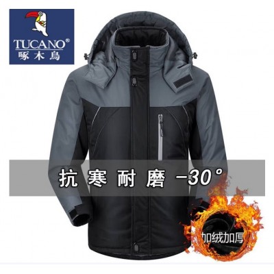 啄木鸟2025加绒加厚棉衣男士冬季外套冲锋宽松棉袄男装定制劳保工作棉服