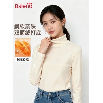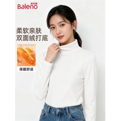 班尼路(Baleno)加绒长袖T恤女秋冬2025新款内搭半高领加厚打底衫女装保暖上衣服