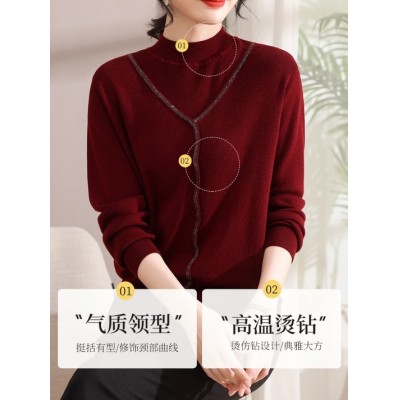 高级感一线成衣羊绒衫女秋冬新款半高领气质宽松内搭毛衣打底衫厚