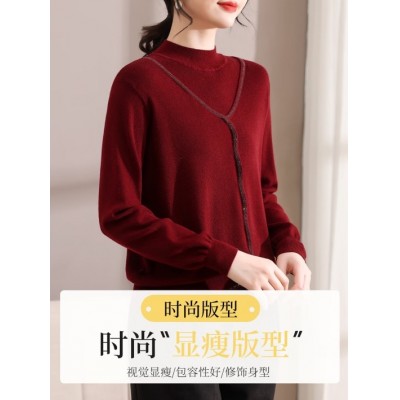 雪夕(XUEXI)新款妈妈本命年红色毛衣半高领打底衫中老年女装冬季内搭针织上衣