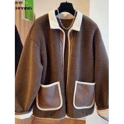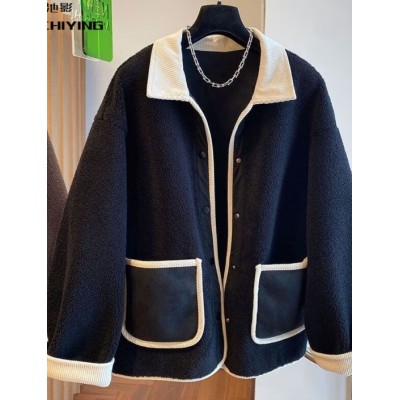 清池影(QINGCHIYING)羊羔毛外套女2025冬装新款韩版宽松显瘦加厚保暖大码拼接毛毛外套