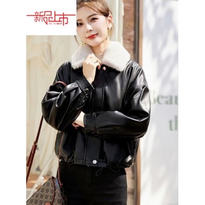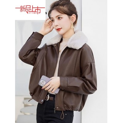 皮尔卡丹(pierre cardin)皮衣外套女秋冬2025新款加绒加厚宽松显瘦休闲洋气百搭保暖带毛领