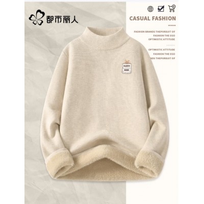 都市丽人加绒毛衣女款2026新款冬季保暖半高领打底衫女内搭可外穿洋气上衣