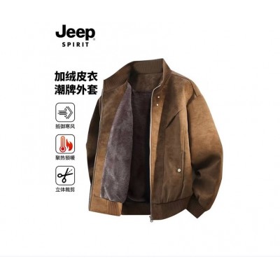 EEP SPIRIT吉普加绒加厚麂皮绒皮衣男秋冬季高级感夹克外套