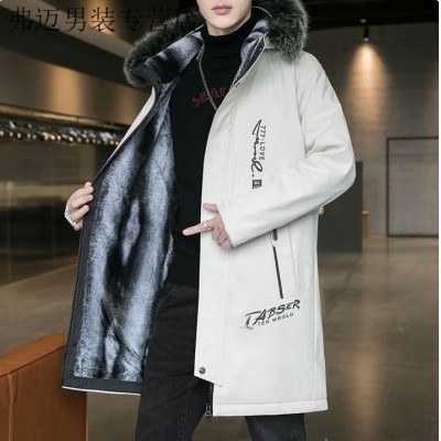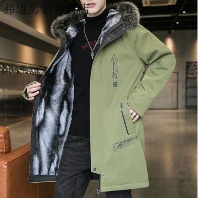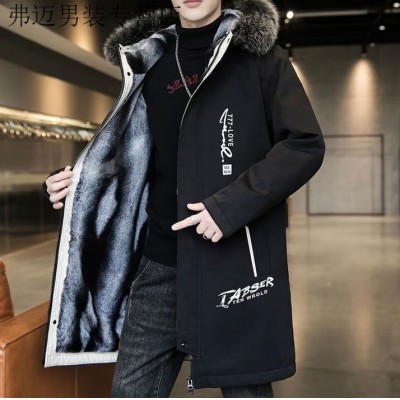 NAOISKEY 脑斯基加绒男士冬季保暖外套中长款加厚连帽冬季宽松百搭新款潮流派克服
